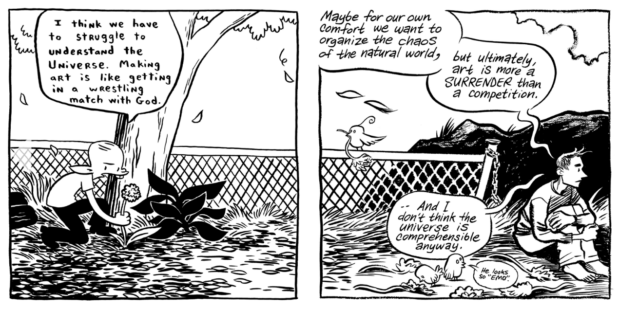 Seth: I dunno, I think I’d present both sides of the argument like…classifying comics as comics helps people find comics, but classifying comics as “sociology” or “literature” or whatever (where applicable) might help the format legitimize itself more as a format VS. a genre.
